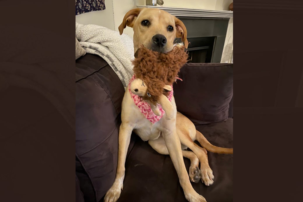 Lana, who had eye surgery before her adoption, has adjusted well to her new home. Her favorite toy is her Kong, and she loves long walks and chasing the leaves in the wind.