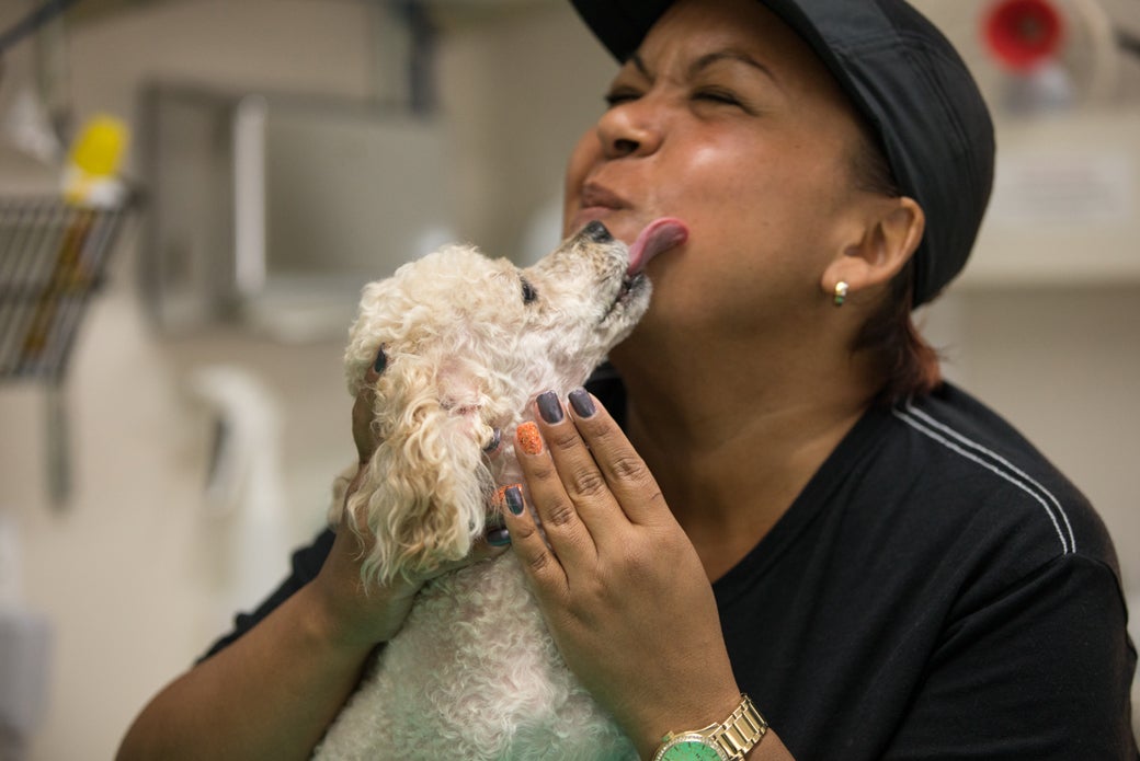 They knew they had to act quickly. Due to the severity of her injuries, our veterinarians rushed to stabilize Charlotte and then transported her to the Animal Medical Center (AMC) where she could receive immediate neurology and orthopedic consultations. This is where Jeanette M. first saw the small Poodle. Jeanette works for a laboratory that is located inside of AMC, and as Charlotte came in on the gurney, still wrapped in her white towel, Jeanette felt an instant connection with her. “The minute I saw Charlotte, I knew she had to be mine. I knew that being with me, she would be in a very good home,” Jeanette tells us. While Charlotte’s road to recovery had only just begun, little did she know, she had already found the love and care of a devoted adopter. Jeanette told us on that first day that she wanted Charlotte, and that she would wait as long as she had to for this special little dog.