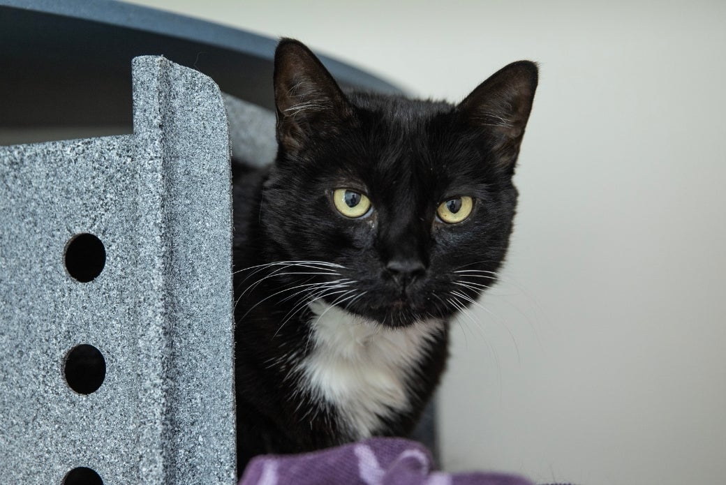 This adventurous girl also likes to explore her surroundings! Seeking out the best sunbeam to nap in is one of Patrice’s favorite pastimes. She also likes to quietly keep an eye on the neighborhood from a windowsill or cozy corner of the home. She will thrive with an adopter who is looking for a mellow companion who can keep herself busy and is just as content socializing with her friends!