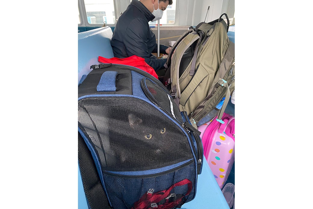 Since being adopted, Phoenix travels to work at the Adoption Center with Rena often, taking the bus while sitting in a little backpack Rena wears on the front of her.