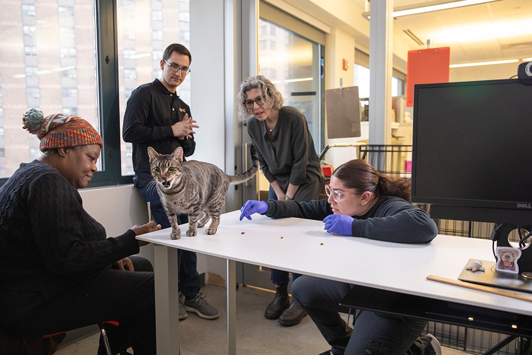 Gertrude and Abigail at the ASPCA with, from left, Matt Goldweber, Senior Program Manager, Community Engagement, Delia Kurland, Senior Director of the ASPCA Adoption Center and Kitten Nursery, and Brittney Umana, Licensed Veterinary Technician Manager at the Adoption Center.
