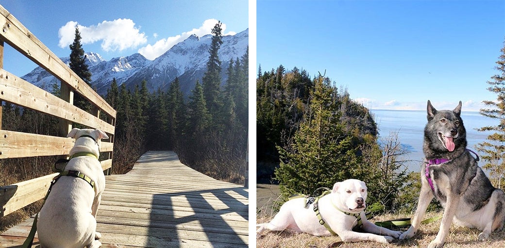 On a recent weekend trip to Ninilchik, a town on the Alaskan coast, Buddy tested the waters of the Kenai Peninsula, and on hikes to places like Byers Lake or Beluga Point, he and Cinnamon take to the water.