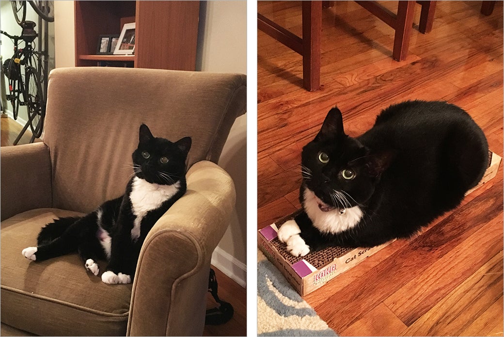 Molly tells us that the adjustment period was easy, since Ashante was already familiar with them and their home. Molly and her partner are so thankful to have found Ashante, and to have been able to foster and care for Nemo while he was with them. It is through the wonderful and selfless care of fosters like Molly that animals in need who are not ready for adoption can have the comfort of a home and the love of a family. Although Ashante’s journey was long, and there were sad moments along the road, the sweet kitty is now where she belongs—in a loving home with her perfect pet parents.
