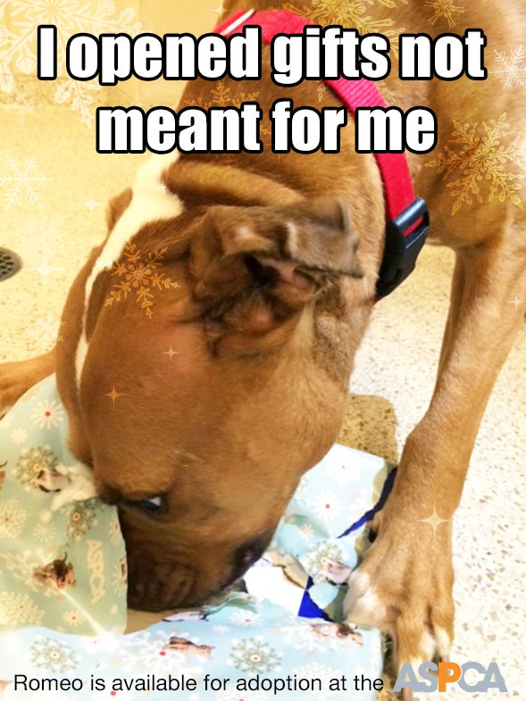 Below are some adoptable animals at the ASPCA who are a tiny bit "naughty," but 100% lovable! They're looking for loving homes this holiday season: