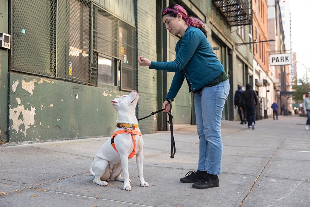 “One of the biggest challenges when adopting a deaf dog is learning how to communicate with them,” says Adi Hovav, Senior Manager of Behavior. “We rely so much on our voice when communicating with dogs, it can sometimes be hard to shift to using body language alone. The good news is that dogs are excellent at reading our body language, so they quickly pick up on cues. With Helena, we taught her different hand signals for basic cues, such as sit, stay and down.”