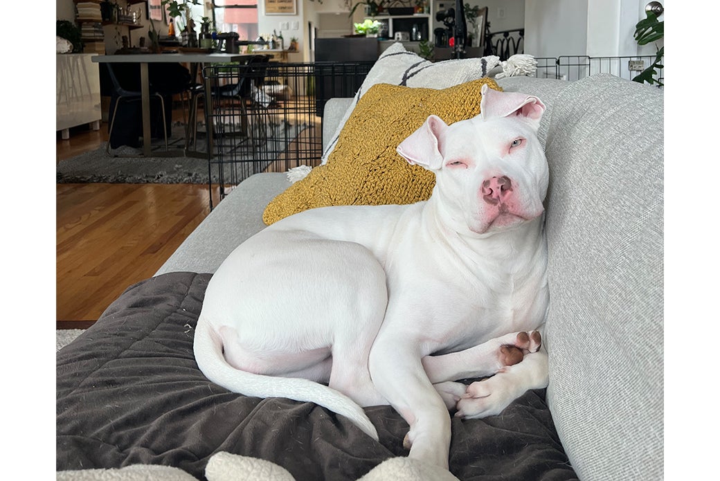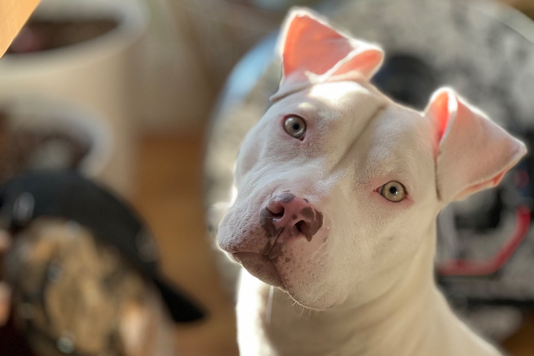 In June 2022, a one-year-old pit bull with white fur, striking eyes and big, floppy ears was brought to the ASPCA by the NYPD. She had been found tethered in a backyard where she didn’t have enough shelter from the rain. It was soon discovered that Helena, as she was later named, was deaf.