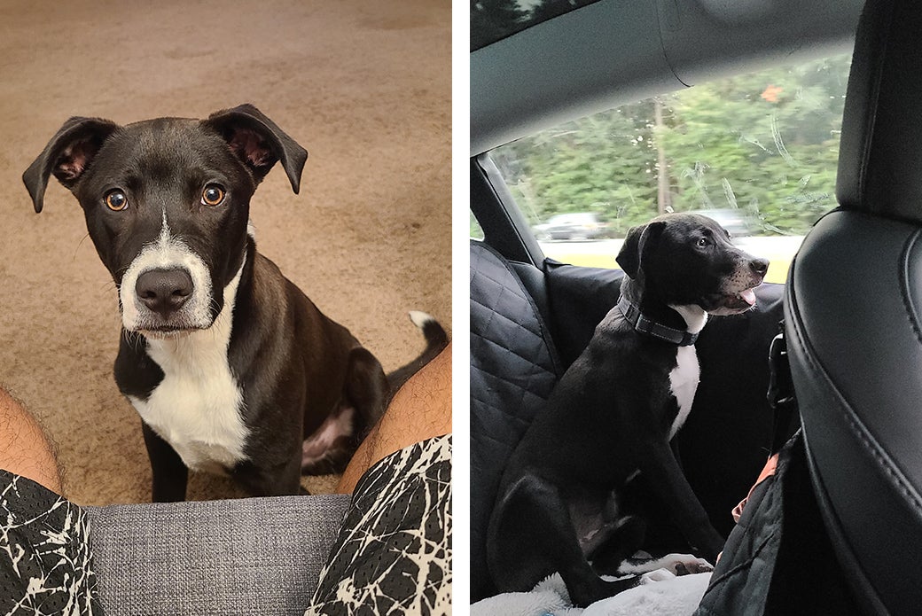 Already in love with their new furry friend, the couple adopted Leo and brought him home that day.