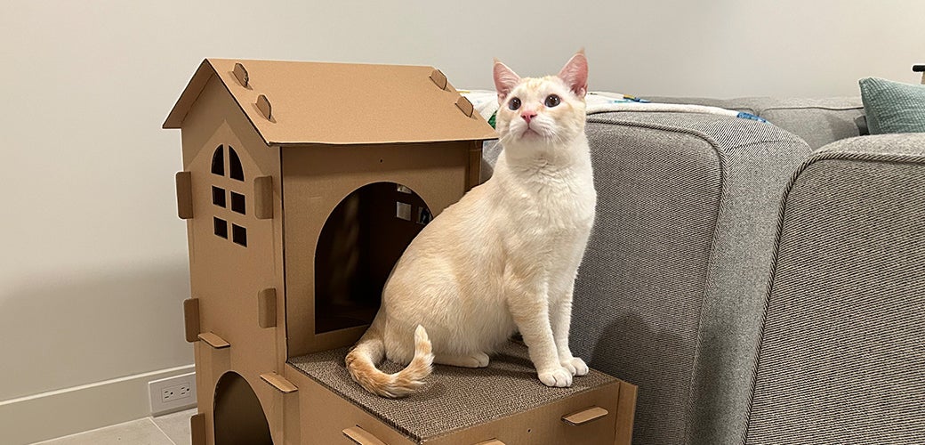 When Roy isn’t playing, you’ll probably find him curled up in one of one of his favorite cozy spots. Sometimes he’ll even enjoy a catnap underneath the bed sheets! He adores getting to snuggle with his people, and loves getting cheek and chin scratches. This social boy even enjoys having company nearby when he eats a meal!