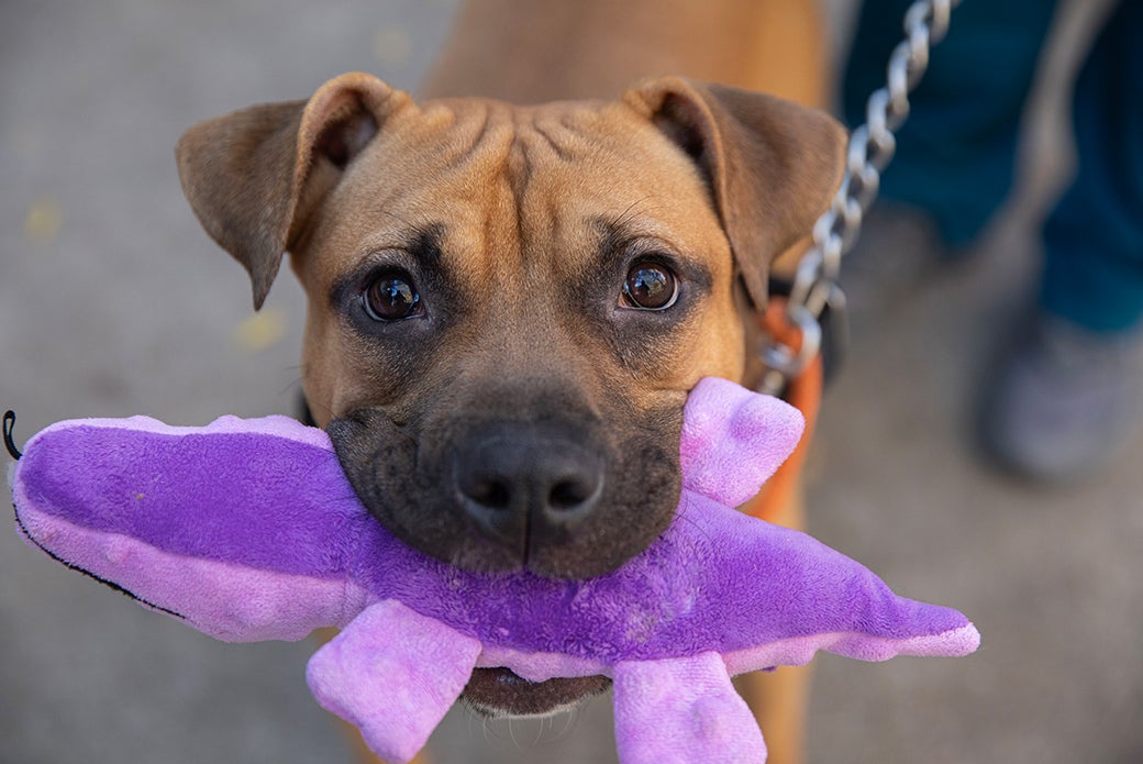 Ursula is ready to be adored by a loving family of her own, and no pup deserves it more! She is a happy, wiggly dog who makes friends with every person she meets. Her favorite activities are tossing her plush toys around, playing a game of fetch and settling down with a chew toy. Ursula balances her days well between playtime and rest, and she even finds ways to stay occupied when her human friends are busy.