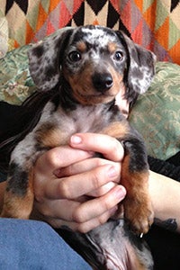 “After losing my childhood pet two years ago—a Lab/Basset mix—I started to really miss the warmth and energy of a dog in my life. I love Dachshunds and was spending all of my free time searching rescue websites. Finally, I heard about the puppies at the ASPCA and ran over. Marcel is adjusting at lightning speed! His first night he stayed in the back of his crate, and shook for several minutes in each new setting. Now, as much as he loves his crate, he comes out to find me to play fetch!”
