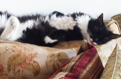One-year-old Spencer came to the ASPCA after being abandoned near a cat colony in Astoria, Queens, last November. The handsome black-and-white cat enjoyed quiet, gentle attention, but was nervous around new people and had a tendency to act defensively when approached too fast. At the ASPCA Adoption Center, our expert Behavior team spent some time helping Spencer come out of his shell, and he was soon ready for adoption. In January, he met Linda and Stuart Miller.