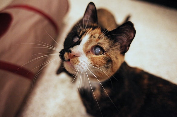 Hilary has some visual impairments. She is a friendly cat. While she may be a bit tense when you try to pick her up, she’ll relax once she feels completely supported and held. Hilary likes to play with toys, and enjoys tasty treats! She is friendly with her feline companions, and should be adopted with her bonded sister, Wendy.