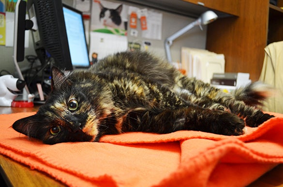 As part of our adoption program, some of our feline friends have the opportunity to live in ASPCA team members' offices. Living in an office allows cats to have a more comfortable and domestic living space, and allows our behaviorists to learn more about each individual kitty's personality and needs. Through the office foster program, we are able to offer adopters a clearer picture of how their new feline friend will adjust to life in a permanent home. If you're interested in adopting one of our office companion kitties, or for more information, please call (212) 876-7700, ext. 4120.