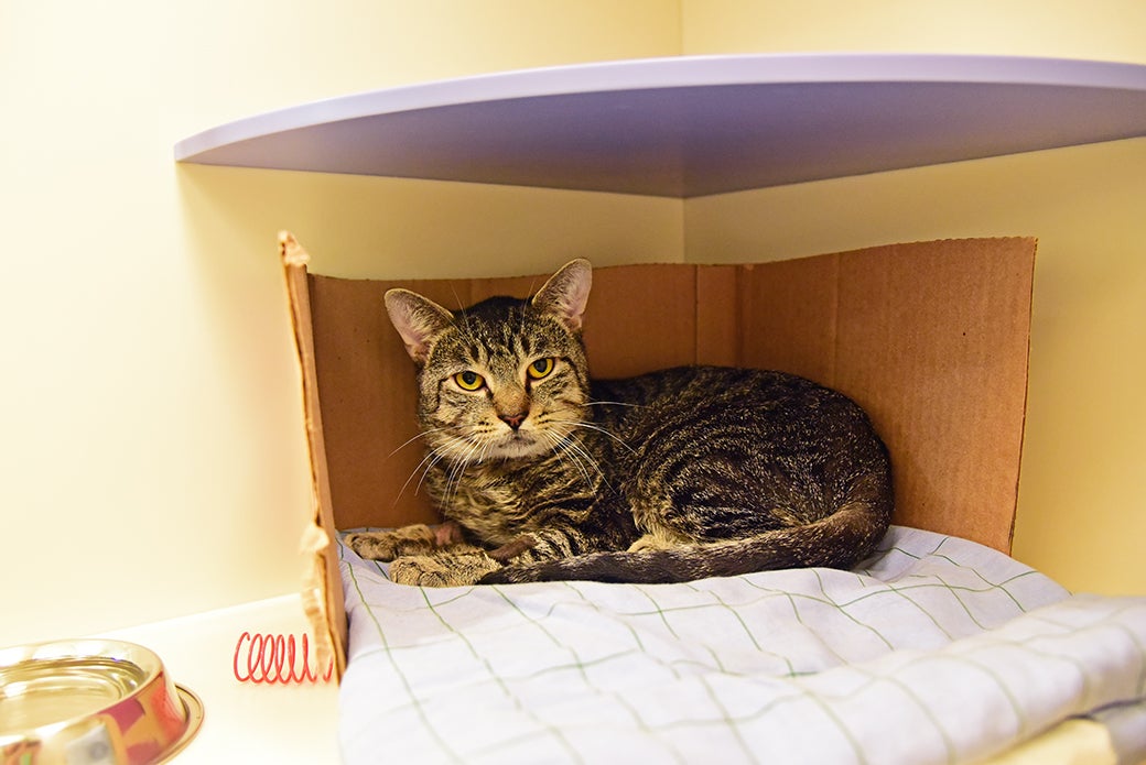 If you’re looking for a cat who loves attention, Amarillo may just be your guy! This sweet kitty can be a little nervous initially, but give him some time to warm up and he’s sure to melt your heart. The biggest fan of pets, scratches and rubs, Amarillo adores receiving attention from his human friends. He may even paw you or headbutt your hands to let you know he’d like some love! Sometimes Amarillo can get a little too excited about the pets he’s getting, but he’s always courteous and makes sure to give plenty of cues to let you know. The only thing that could compete with Amarillo’s love of attention is his love of burrowing! If you give Amarillo a blanket and turn your back for just a second, you may find yourself wondering where he went. But, once you see movement under that blanket there’s no question!