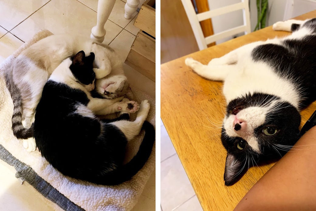 Bali and Baffin are bonded, so they must go home together. Their dream home is a quiet place consisting of teens and up, with a patient adopter who understands that they will need a few weeks to settle into their new digs. Their adopter should also understand that they may always be a little shy—and that’s just part of who they are! Both Bali and Baffin have been a little picky with their litter boxes, but we’ve found a setup that works great for them and our Matchmakers would be happy to share details. If you’re interested in adopting this lovely pair, please fill out our Cat Adoption Survey!