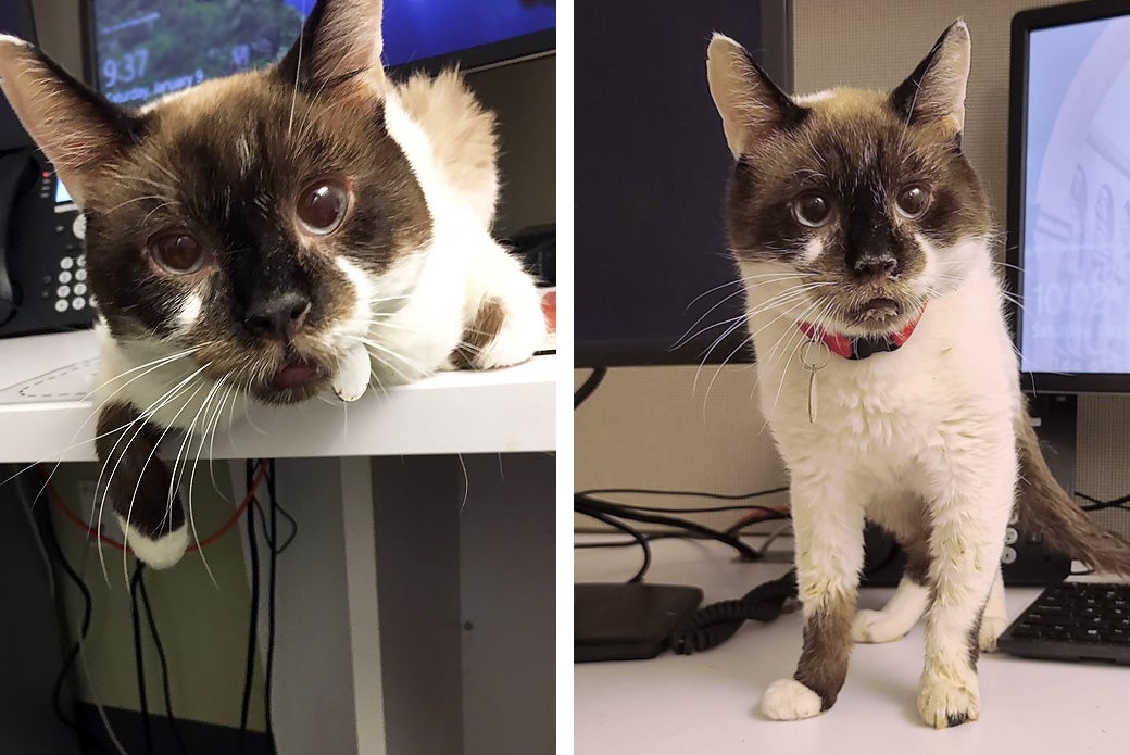 Bermuda, “is a big sweetheart, but is still a little shy on affection,”—so adopters should know that he may be a little more timid than some other kitties. He’d do great in a quiet home with a patient adopter who’s excited to help him continue coming out of his shell and understands that it will take him time to show his true colors. We think that small kids would be overwhelming for this old soul, so a home with teens and up would be best. Bermuda does love other cats, however—so if you’ve already got a kitty, sign this guy up! If you’d like to adopt Bermuda, please complete our Cat Adoption Survey.