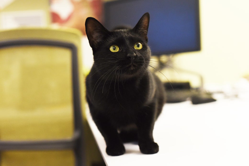 As part of our adoption program, some of our feline friends have the opportunity to live in ASPCA team members' offices. Living in an office allows cats to have a more comfortable and domestic living space, and allows our behaviorists to learn more about each individual kitty's personality and needs. Through the office foster program, we are able to offer adopters a clearer picture of how their new feline friend will adjust to life in a permanent home.