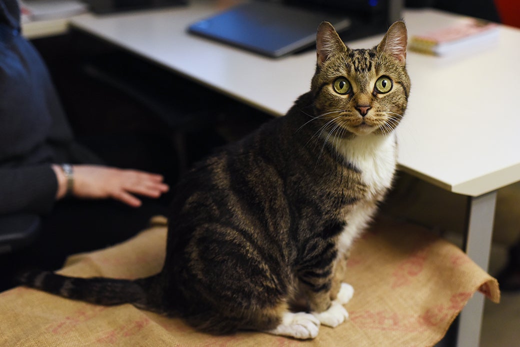 As part of our adoption program, some of our feline friends have the opportunity to live in ASPCA team members' offices. Living in an office allows cats to have a more comfortable and domestic living space, and allows our behaviorists to learn more about each individual kitty's personality and needs. Through the office foster program, we are able to offer adopters a clearer picture of how their new feline friend will adjust to life in a permanent home.