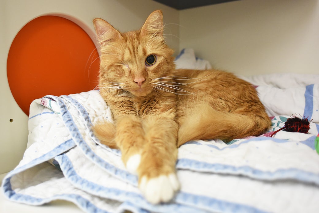 When Mangrove arrived at the ASPCA, he had adhesions on his right eye that could not be fixed. For his long-term health and comfort, Mangrove’s right eye was removed.