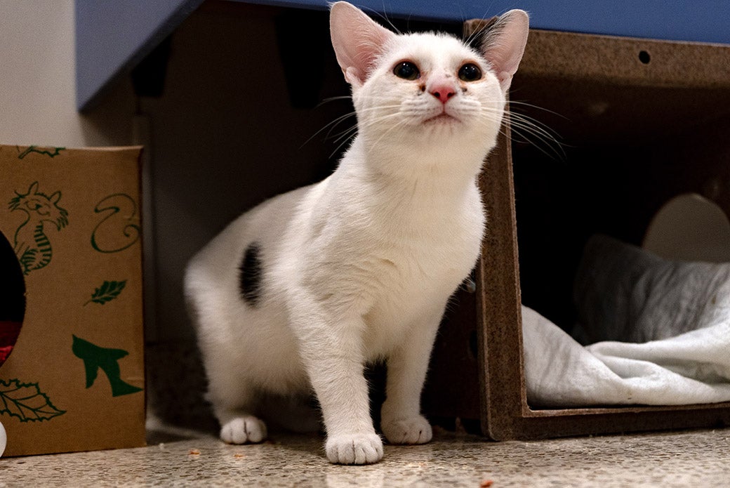 Midnight is a cat’s cat! This sweet boy enjoys nothing more than being around his feline friends, especially if they’re active like him! In addition to speaking his language, other kitties help remind Midnight to let his true personality shine. He’s naturally a shy guy, but sweet Midnight has been making strides towards coming out of his shell while he’s been at the ASPCA Adoption Center. After slow introductions, Midnight is a big fan of attention from and games with his favorite people!