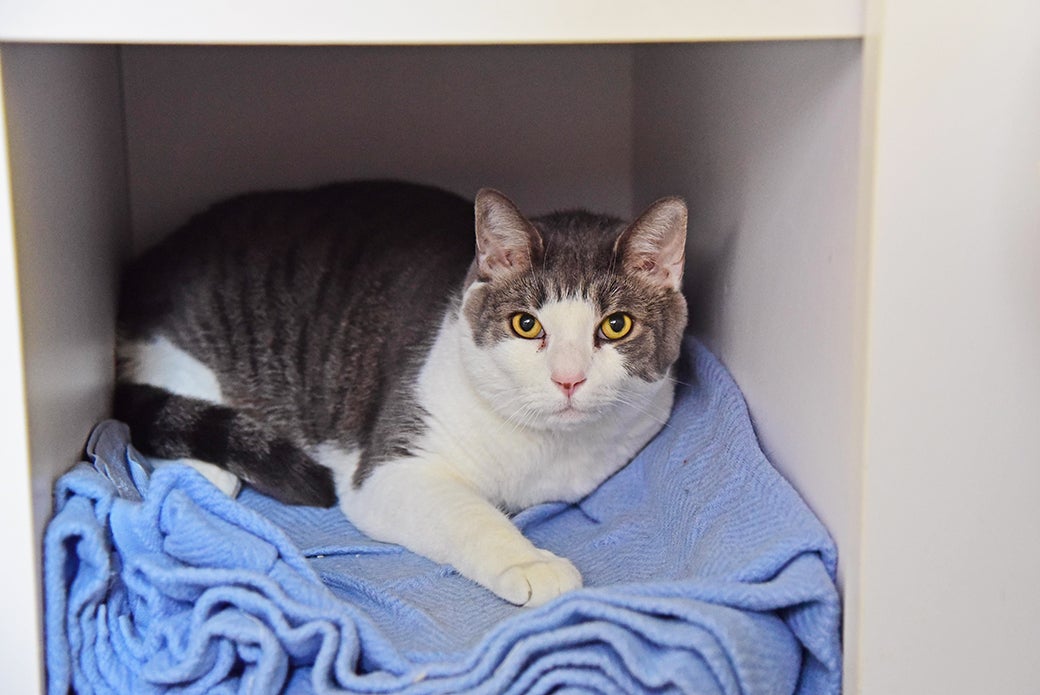 Looking for a kitty who loves his friends but also doesn’t mind doing his own thing? You’ve found the right guy! Nomar is a loving boy who can be a little shy around new people and in new places. Once he feels comfortable, you can really see Nomar’s personality shine! From laying at your feet while you’re sitting still to following you around when you’re up and about, Nomar loves being close to his favorite people. But his favorite way to pass the time with his human friends is with plenty of playtime! Nomar adores batting around anything and everything he can get his paws on. Even though he’s social with his buddies, Nomar’s great at being an independent kitty too. He loves curling up for naps in cozy nooks and spending lots of time relaxing! Give him some quick scratches while he’s there and Nomar may even let you hear his amazing purr.