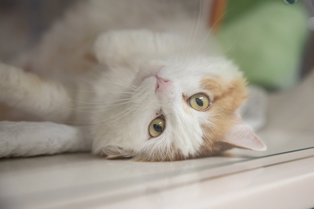 Penelope is one of those sweet cats who makes your heart skip a beat the moment you first see her—not just because of her beautiful looks, but also because of her sweet personality. Penelope is a sensitive soul who enjoys the quiet things in life. She can be a bit nervous around new people, but give her some time to get acquainted and you can see her shy shell start to crack. It all starts when Penelope gives a quick, gentle look towards you. Approach her slowly and offer her your hand, and soon Penelope will be headbutting you for pets. She especially loves scratches on the neck and behind the ears. If she really likes you, Penelope may even boop you with her nose, make biscuits or let you hear her sweet, quiet purr! She’s also been noted by ASPCA staff to enjoy munching on treats and watching bird videos.