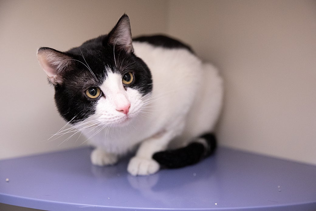 Get ready to fall in love with Remington! This handsome young man just arrived at the ASPCA Adoption Center, so we’re still getting a feel for who he really is. Remington has been nervous in the shelter, but he clearly has a sweet side that he’s been having trouble keeping hidden! Remington can usually be found lounging in his box, often with his front feet stretched as far out as he can get them. Quick movements tend to make this shy guy a little nervous, so approach him slowly and he’s sure to be a happy kitty. Once he feels comfortable with you, Remington is glad to receive gentle cheek rubs, roll around in catnip, play with pipe cleaners or eat as many treats as you’re willing to give him!