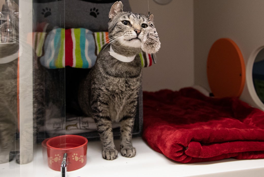 Scallion has definitely started to come out of his shell during his stay at the shelter, but he’s still a bit of a shy dude—and that’s just a part of who he is! He’d love an adopter who’s understanding and ready to let him take things at his own pace as he settles in. Small kids may be a little too rambunctious for him, so Scallion would like to request a home with older children, please! If you’re interested in adding him to your family, please fill out our Cat Adoption Survey.