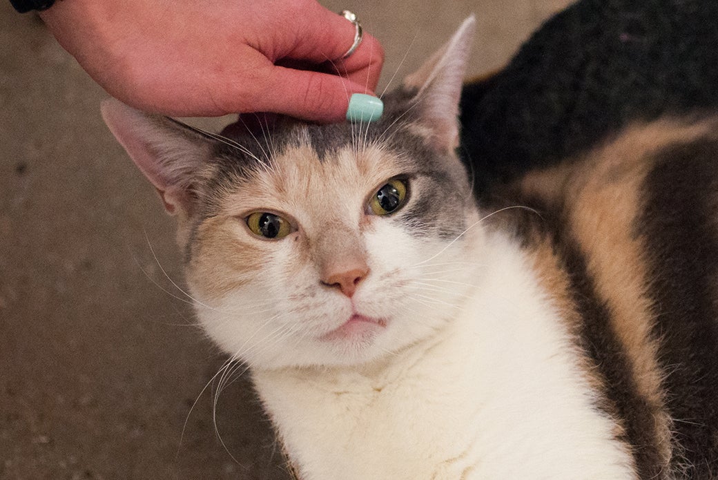 This calico cat likes attention and affection. She is a big fan of lounging and snoozing. You can often find her curled up in her favorite box with a warm, comfy blanket.