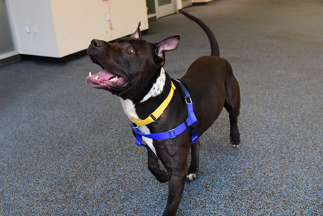 Big fan of: Being with his people! Polo can sometimes be a little hesitant, especially at the always-busy Adoption Center, but beneath what may be a reserved exterior is a heart of gold. You can truly see how much love Polo has for his human friends in his eyes, big smile and tail wag he often greets you with! In addition to getting lots of cuddles and love, Polo also enjoys playtime, too. He loves chasing after toys or treats thrown all the way across the room and will even show off his rock-solid sit if you have one in your hand!