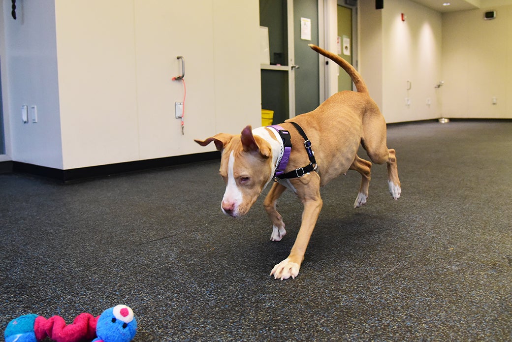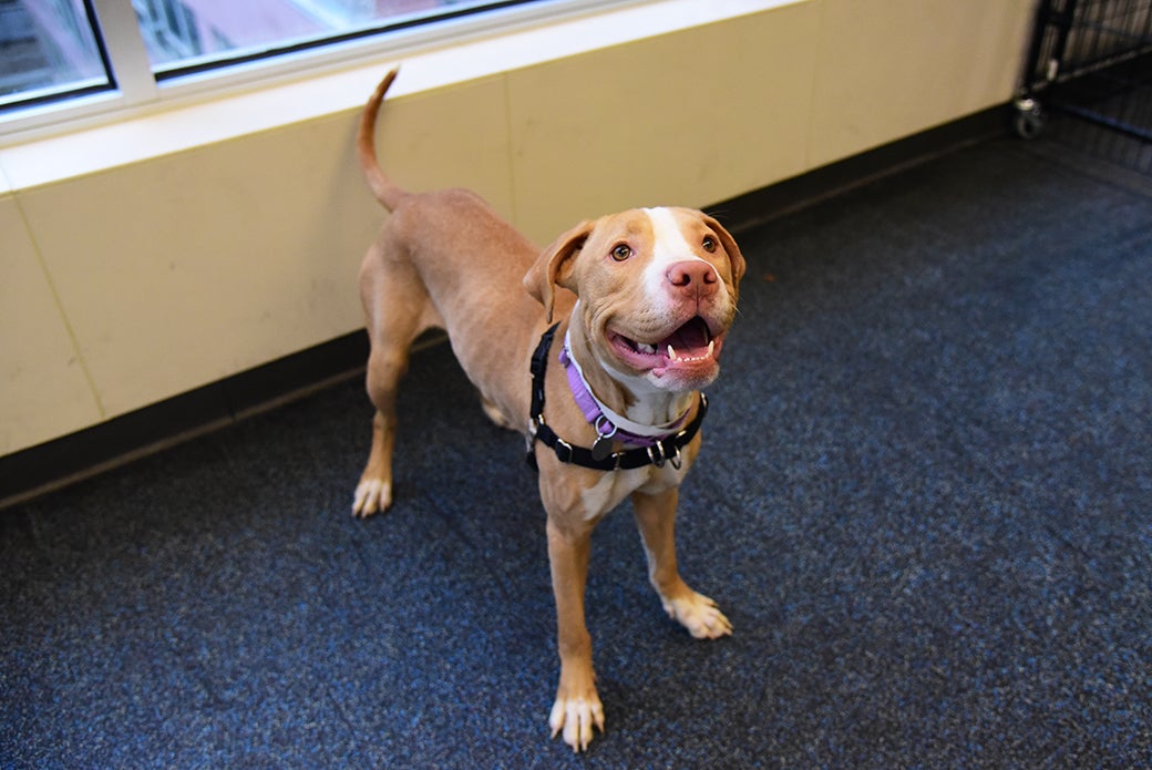 Working on: Her confidence! Sanibel is a gentle girl who, so far, has been pretty overwhelmed at the Adoption Center—especially since it comes with meeting lots of new people all the time. She’s definitely a reserved dog—and that’s who she is! Treats, toys and lots of love always help this sweet girl come out of her shell and show her fun side. But, just because she’s a little shy doesn’t mean she’s always scared! When it comes walking along the big city streets, Sanibel has no problem. She even makes sure to keep looking back at the human walking her to make sure they’re having fun, too!