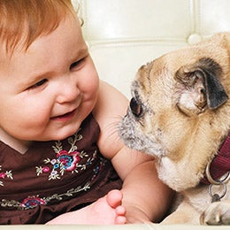 As often as possible, reward your dog for behaving politely when she’s close to the baby. Encouraging calm, controlled behavior now will pay off in the weeks and months ahead—as your baby becomes more and more interesting and exciting to your dog. If someone in your family has time, consider taking your dog to a group obedience class or hiring a private trainer to show you how to teach the basics in your own home. A well-trained dog will make your first few days, weeks, months and even years with your child much easier!