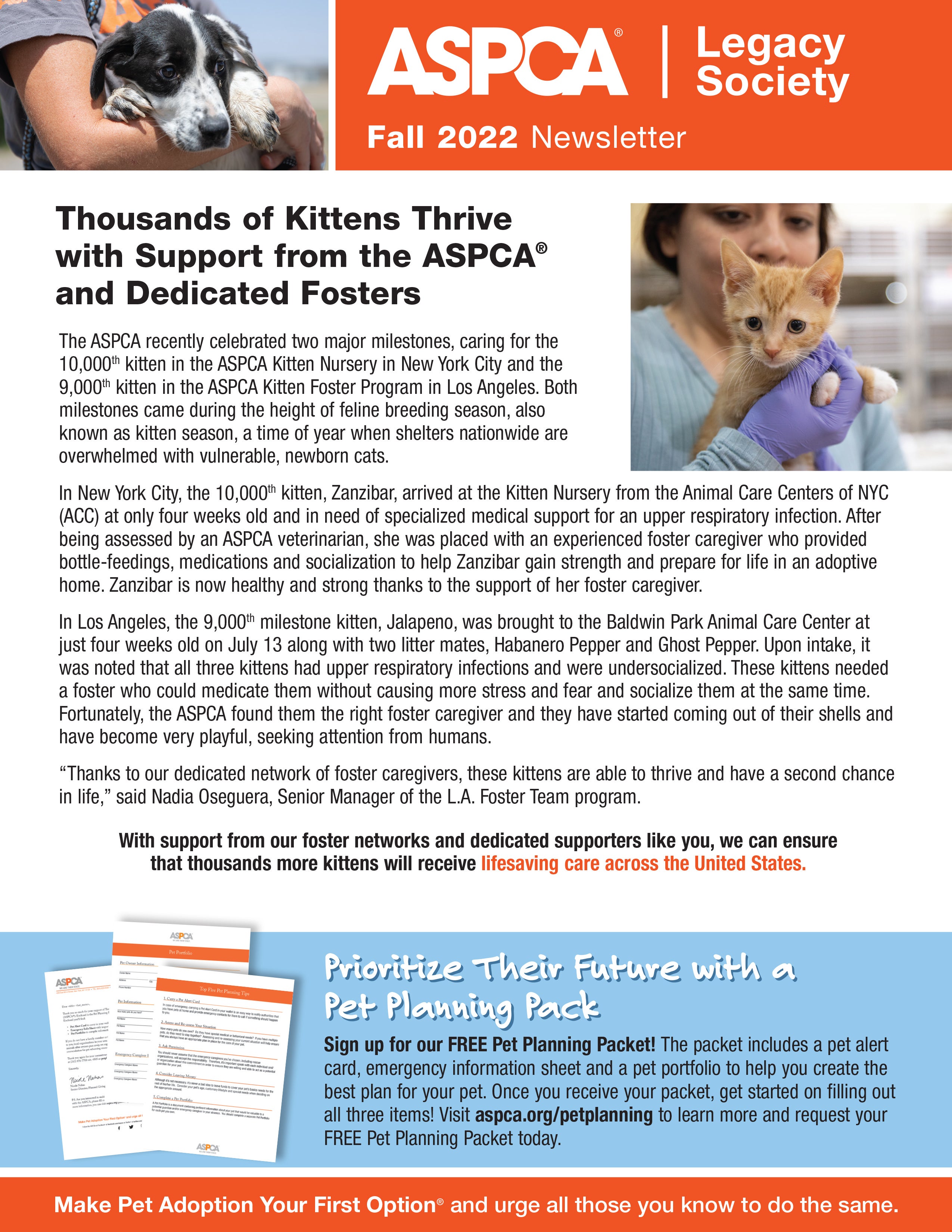 Including the ASPCA in your will or trust is a meaningful way to help us continue to serve animals in need. Many of our programs and services have benefitted from individuals who had the foresight to include the ASPCA in their estate plans.